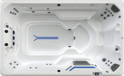 Three airless swim jets provide ideal resistance for workouts and tethered swimming. When you reach your limit, five ergonomic spa seats with 27 hydromassage jets are waiting to help you unwind. The kids can stay close with plenty of room for them to splash and play with the 30″-deep reef between the R500’s bucket seats.