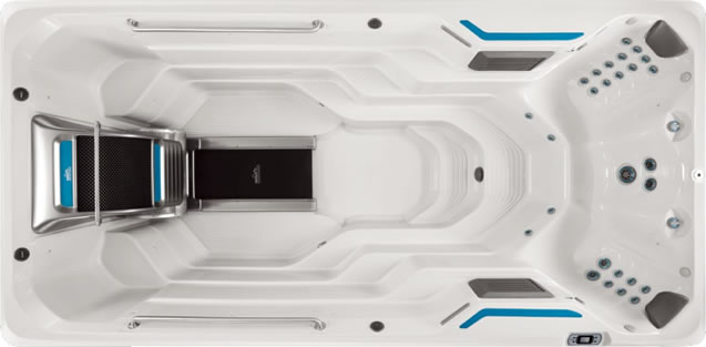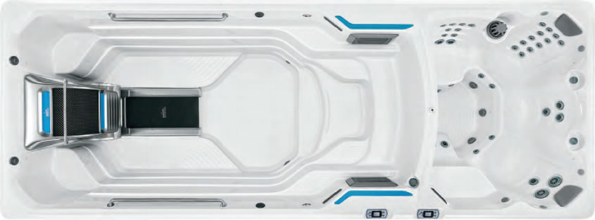 When ordinary doesn’t cut it, the E550 provides the ultimate aquatic fitness and swim experience. In the spirit of less is more, the E550 is unique for what it’s missing. With standing spa zones (instead of spa seating), relocated filtration and steps, and an expanded width of 94 inches, the E550 maximizes the active area. This gives you extra room for practicing the most dynamic aquatic exercises and to stretch out your swim stroke. And when your workout is done, you can enjoy the unique standing hydromassage jets for muscle rejuvenation. With the E550, nothing gets in the way of your progress.