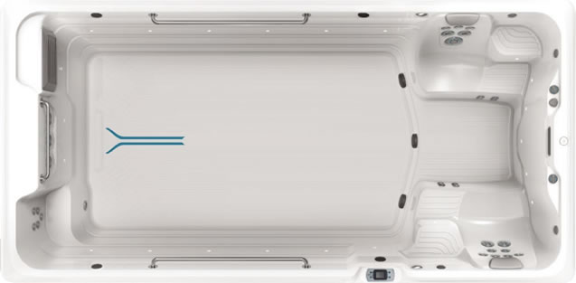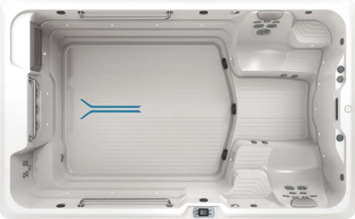 Three airless swim jets provide ideal resistance for workouts and tethered swimming. When you reach your limit, five ergonomic spa seats with 27 hydromassage jets are waiting to help you unwind. The kids can stay close with plenty of room for them to splash and play with the 30″-deep reef between the R500’s bucket seats.